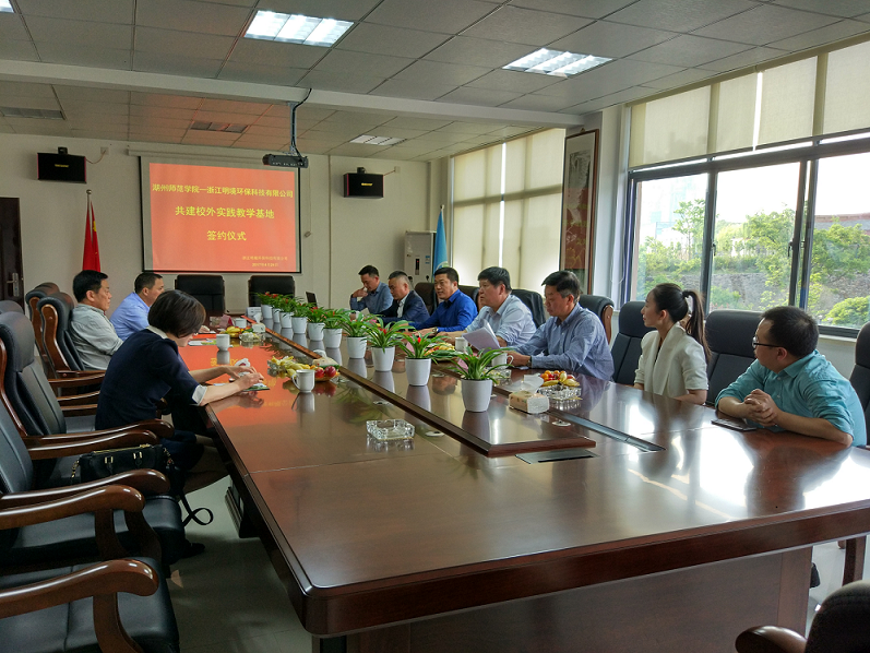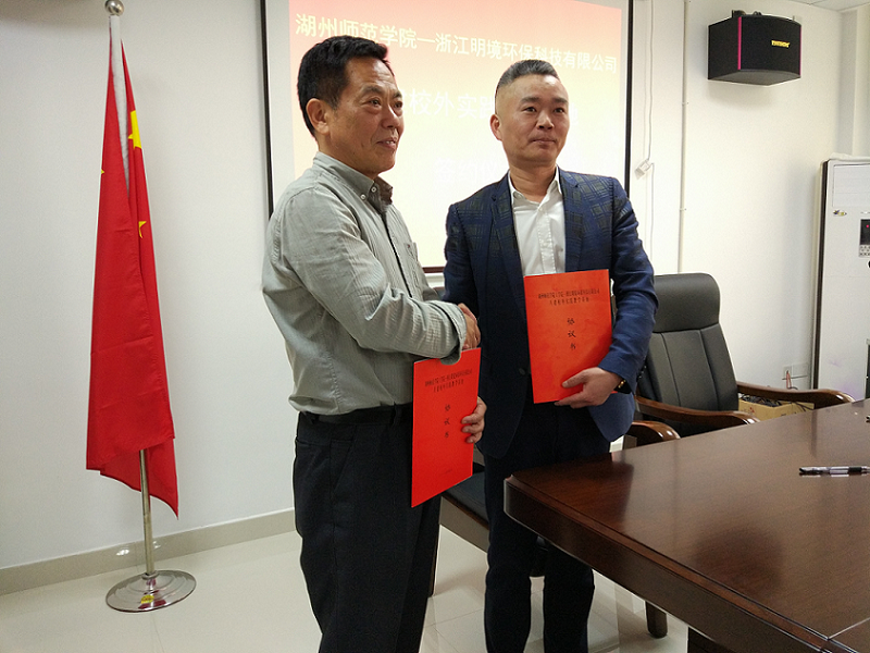 浙江明境環(huán)保科技有限公司與湖州師范學院,共建大學生校外教育基地,強化及細化校企合作的簽約