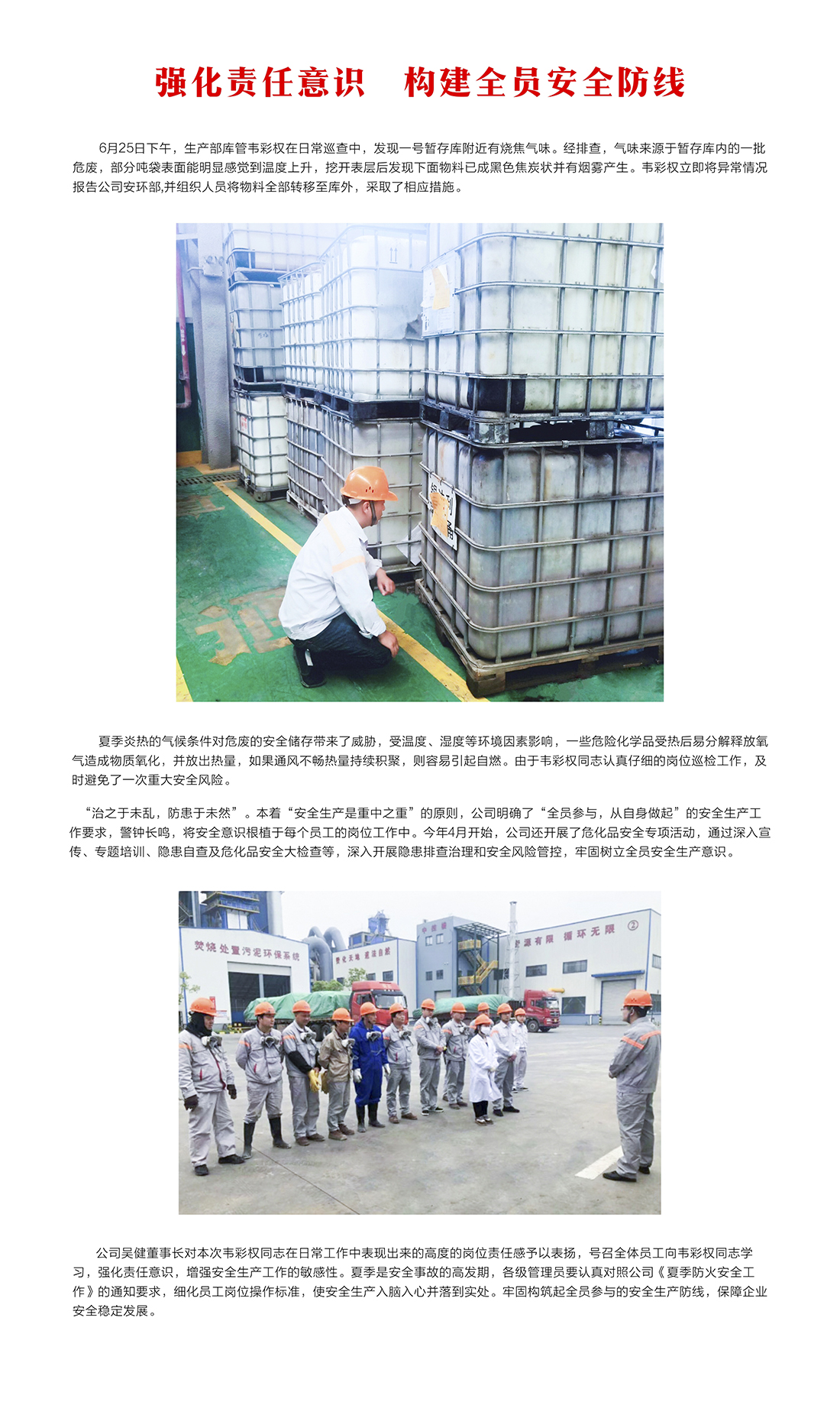 強化責任意識 構建全員安全防線