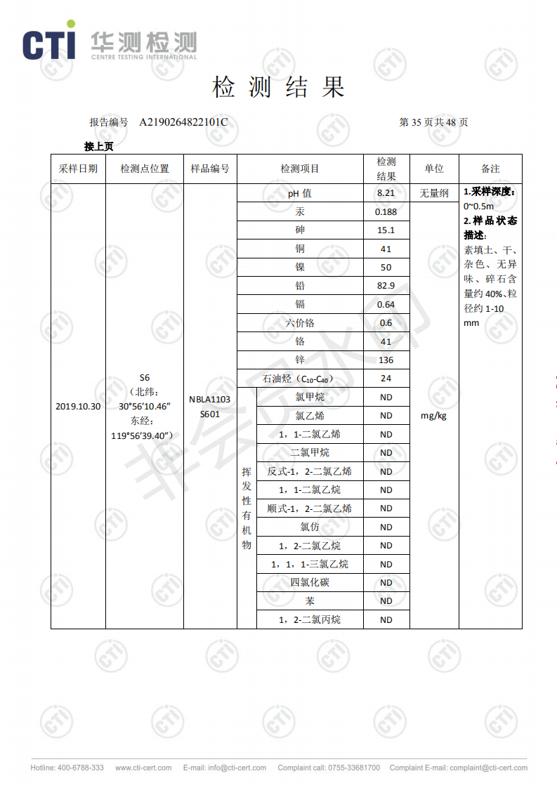浙江明境環保科技有限公司2019年度土壤及地下水自行監測信息公開