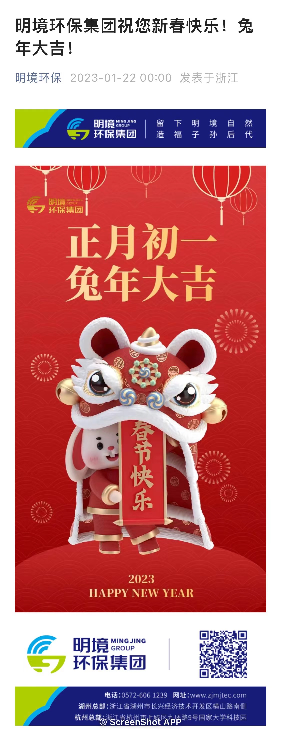 明境環保集團祝您新春快樂!兔年大吉!