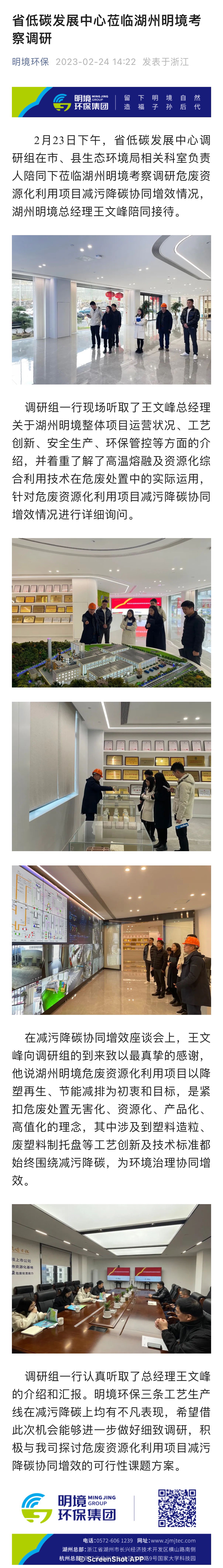 省低碳發展中心蒞臨湖州明境調研減污降碳協同增效情況