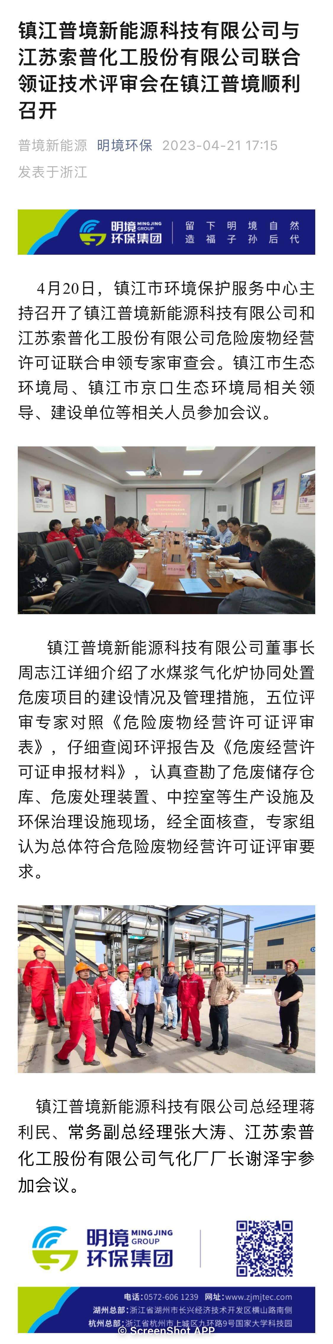鎮江普境新能源科技有限公司與江蘇索普化工股份有限公司聯合領證技術評審會在鎮江普境順利召開